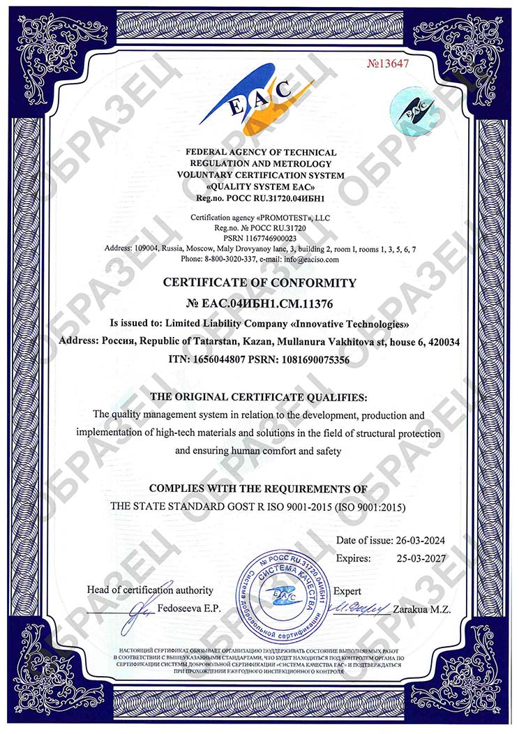 Сертификат соответствия ЕАЭС (МЕТАЛЛ) 45, 60 минут (стр.1)
